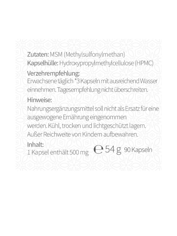 Die wertvolle Verbindung MSM zur Versorgung des Organismus mit Schwefel. MSM Pure ist die vegane Variante rein mit der organischen Schwefelverbindung MSM (Methylsulfonylmethan) als einziger Inhaltsstoffe ohne weitere Zusätze.